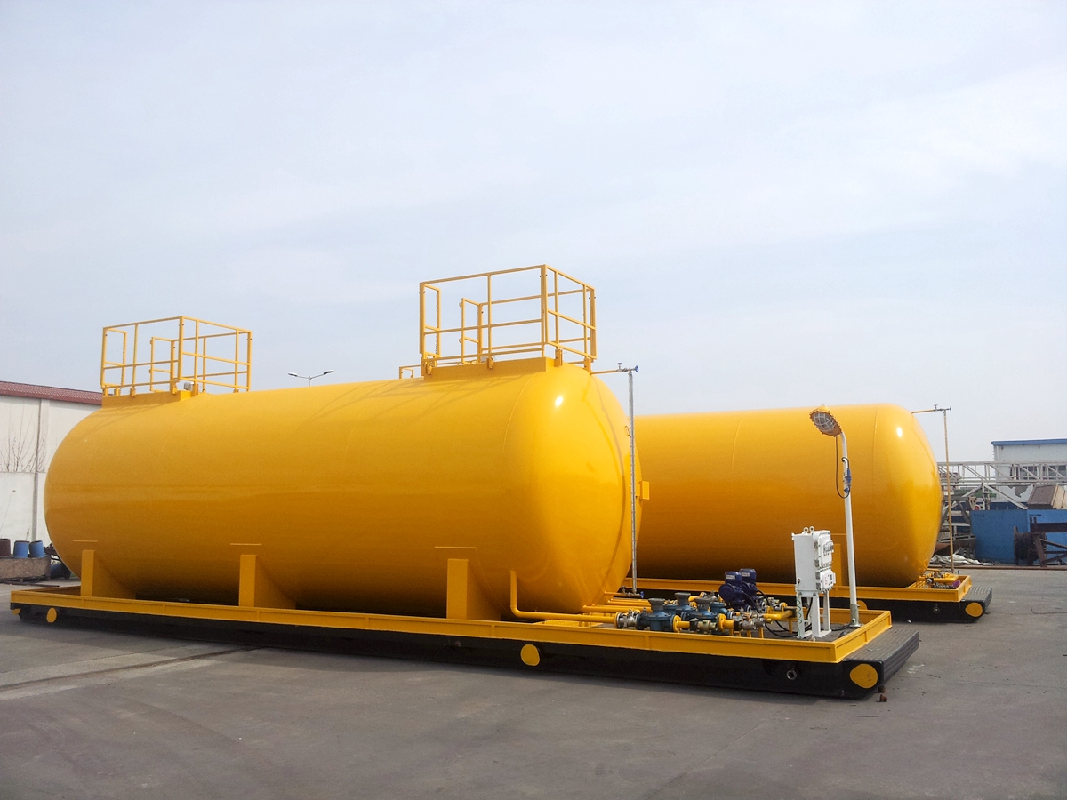 柴油罐是為鉆機動力機(柴油機、發(fā)電機等)提供儲備燃油的專用設(shè)備,油罐主要由底座、油罐、管道離心油泵、過濾器、流量計、液位計、管匯、不銹鋼球閥等部件組成。
