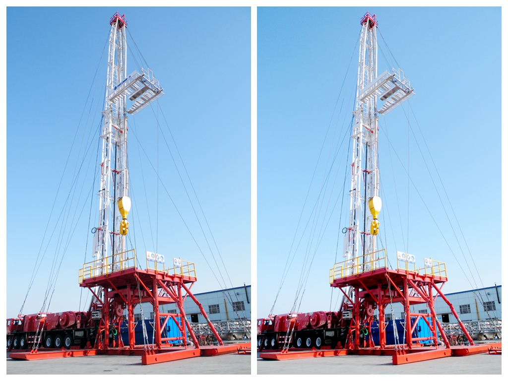 本產(chǎn)品是在常規(guī)車載修井機基礎(chǔ)上,將防風繃繩固定于大跨度的井架基礎(chǔ)和鉆臺底撬上。與常規(guī)車載修井機相比,作業(yè)能力完全相同,但占地面積小。特別適用于面積不夠或者無法固定防風繃繩,同時作業(yè)載荷要求又較大的井場。自繩繩修井機最大鉤載可達1800kN。