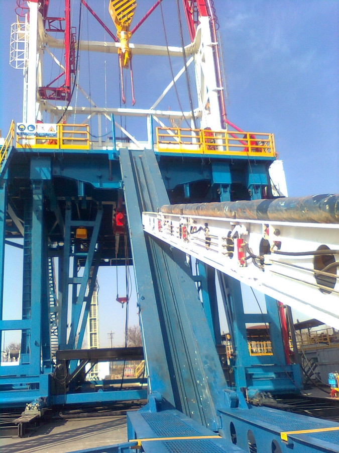 動力貓道是自動化管柱處理系統(tǒng)核心設備之一,主要用于鉆修井作業(yè)過程中,鉆桿、套管及油管等細長桿件在鉆桿排放區(qū)和鉆臺面間輸送工作。