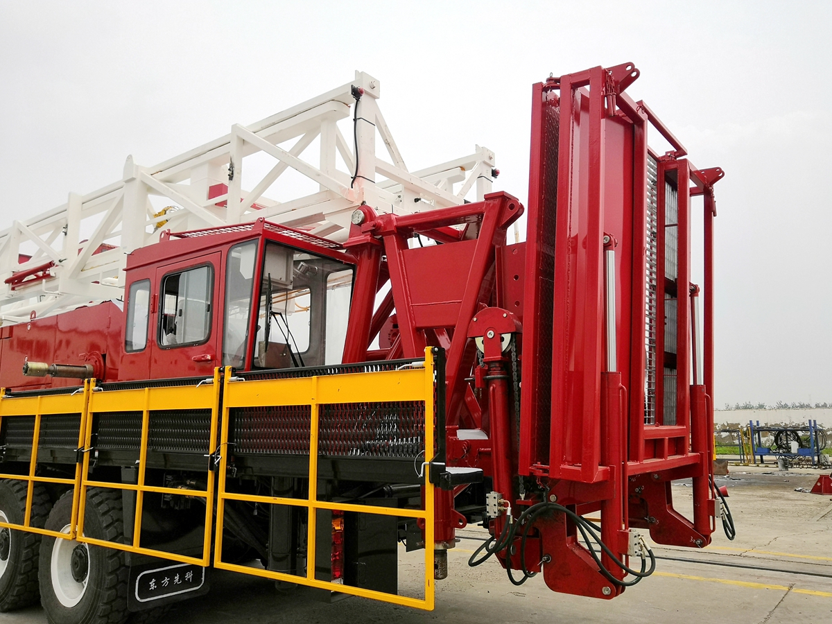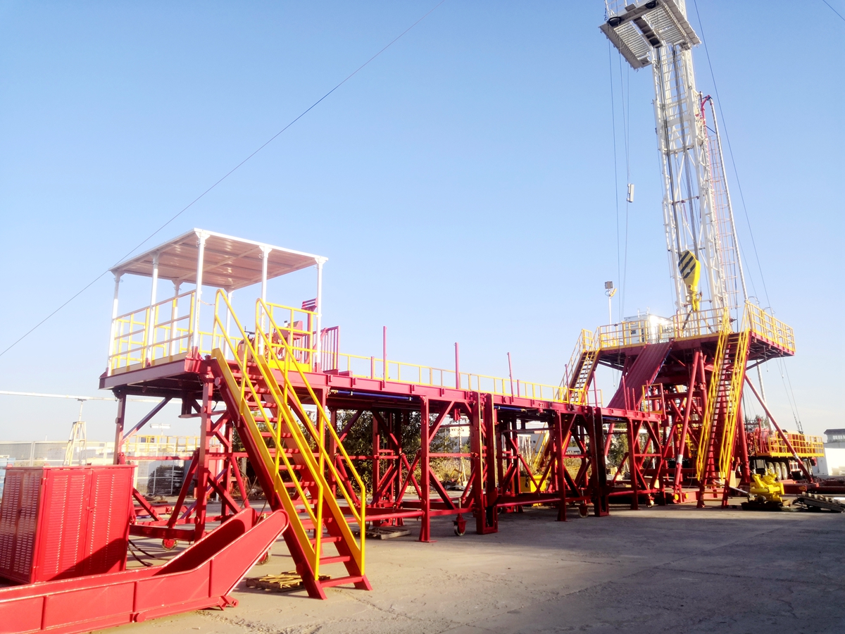 自動升降工作臺是一種主要用于修井作業(yè)過程中操作工人站立工作的平臺。平臺可自動進行升降和翻轉,工作臺翻轉后可隨修井機進行運輸;可滿足從平臺的三個方向上、下管的要求;設有油污收集裝置,避免油污污染環(huán)境,滿足油田環(huán)保的要求。