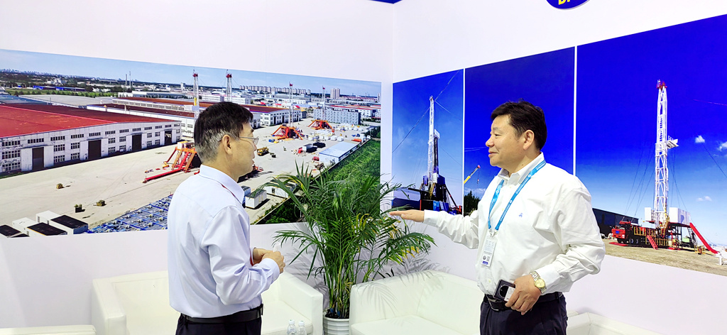 東方先科集中展示了公司的兩大板塊業(yè)務(wù):一是制造板塊,包括1000米--4000米車裝鉆機(jī)、1000米--4000米拖掛鉆機(jī)、20噸--225噸陸上修井機(jī)、3000米--9000米電動鉆機(jī)、電動修井機(jī)、油田自動化環(huán)保設(shè)備、固井壓裂設(shè)備在內(nèi)的7大系列、30多個品種以及配套產(chǎn)品撬裝營房、集裝箱營房、營房車3大系列。二是工程服務(wù)板塊,主要是鉆修井工程、井下作業(yè)工程等油氣田技術(shù)服務(wù)業(yè)務(wù),擁有完備的石油工程技術(shù)服務(wù)資質(zhì),配備撬裝7000米鉆機(jī)3套、5000米鉆機(jī)3套、各種型號鉆修井機(jī)10余套等。
