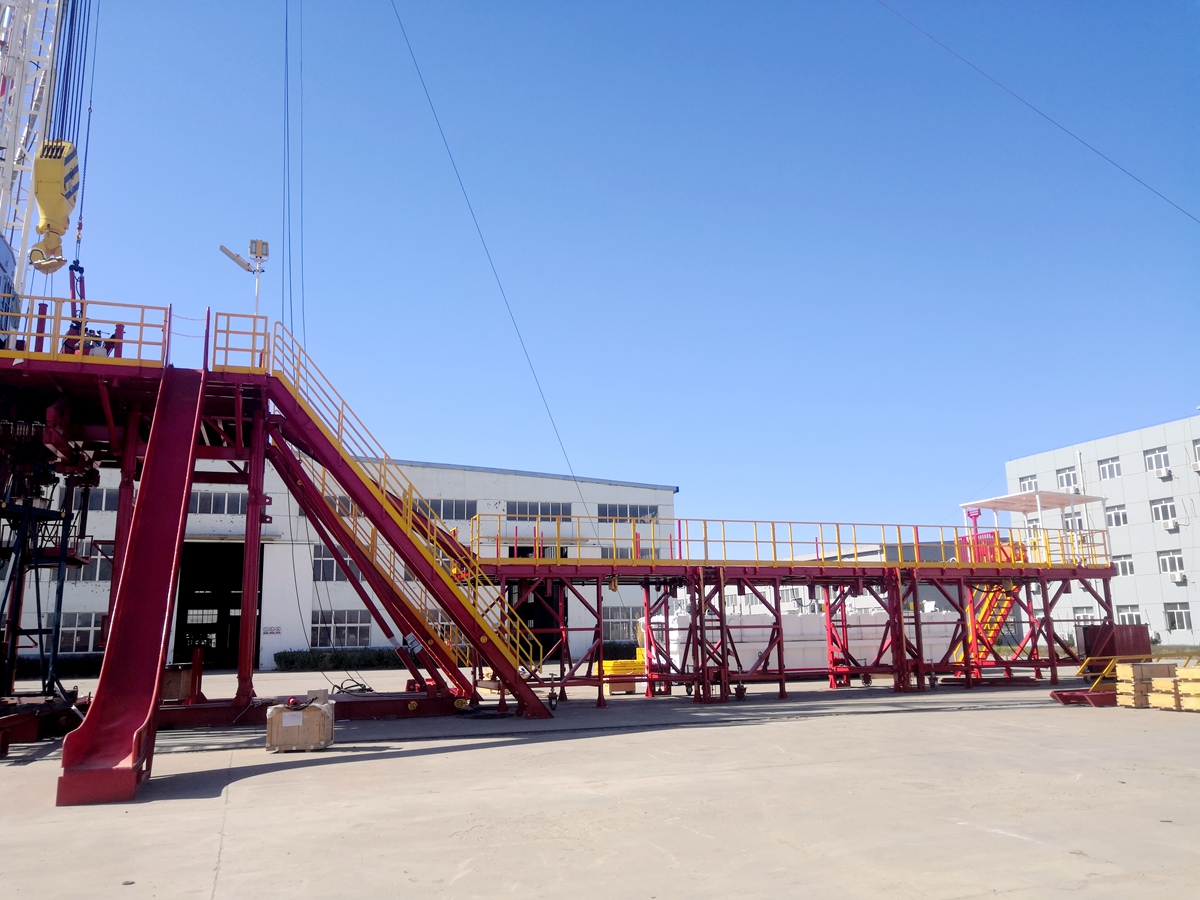 高架貓道主要分為前貓道、后貓道、升降裝置及液壓缸、控制臺(tái)、翻轉(zhuǎn)機(jī)構(gòu)及液壓缸、緩沖裝置及繩樁、氣動(dòng)絞車、梯子、護(hù)欄等幾部分。適應(yīng)高溫、高濕氣候環(huán)境下長(zhǎng)期使用,在防鹽霧、防沙、防冷凝、耐高溫、耐寒、防滲漏和防腐方面具有很高的適應(yīng)性。